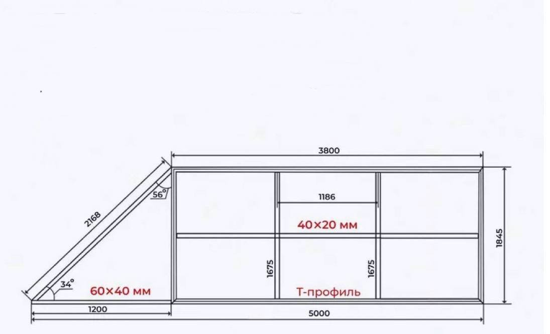 • Ширина обшиваемой части ворот (под профлист) 3800 мм